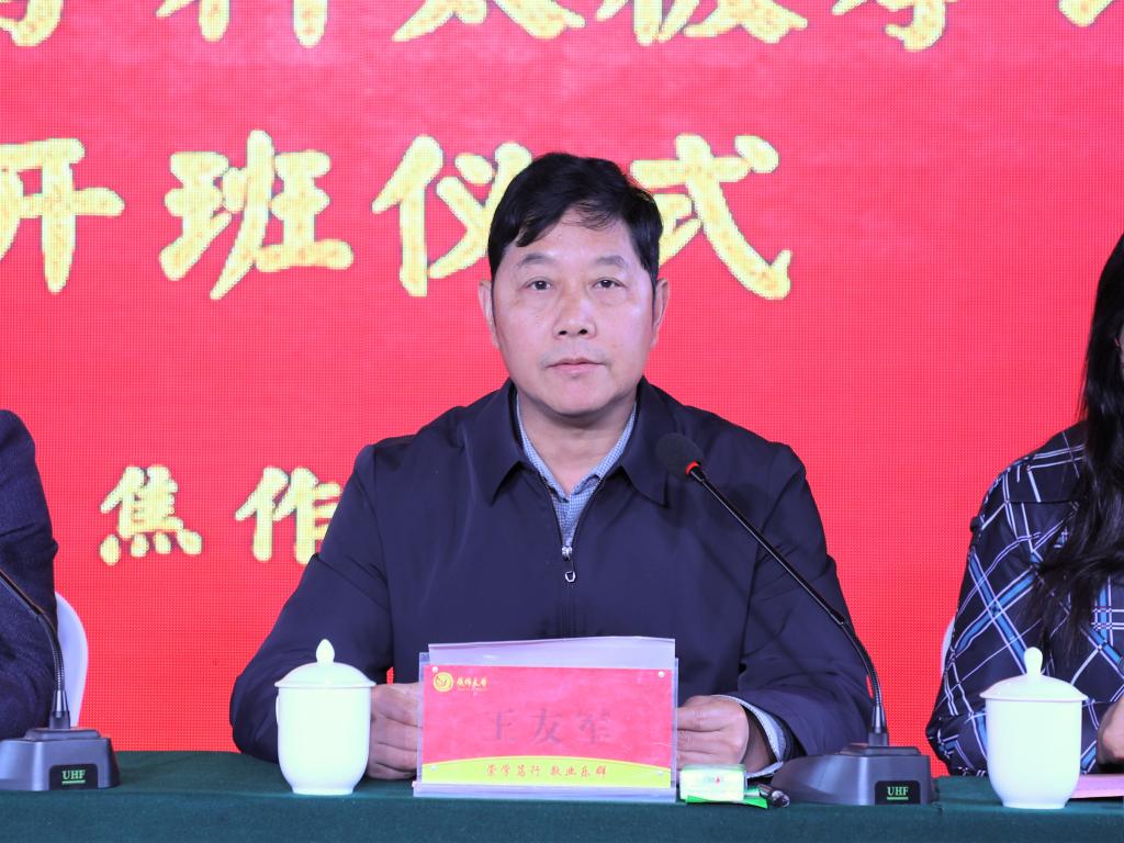 王友军首先致欢迎词。他介绍了太极武术学院的基本情况、教学优势、培训专家,表示我校作为承办院校,将用心用情做好此次培训的组织管理、教学实施和后勤服务工作,确保培训圆满举行。