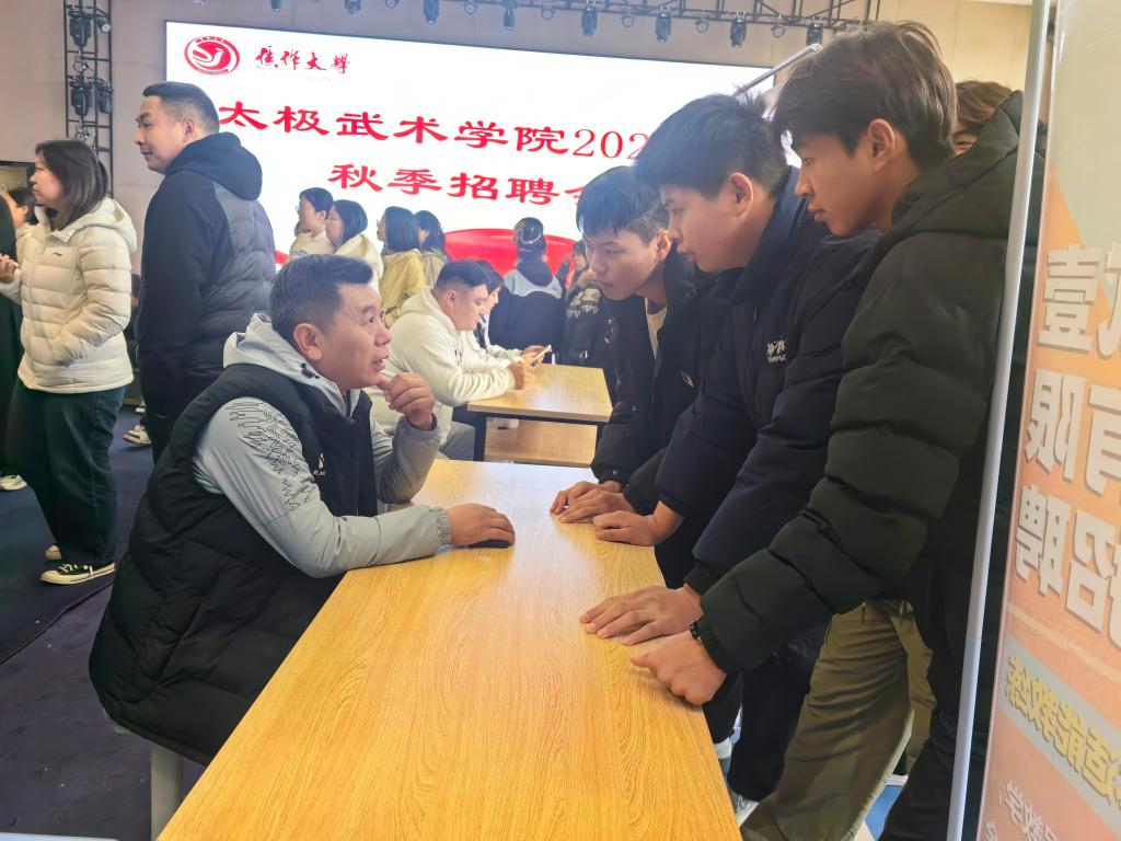 招聘会现场,企业展位前聚集了前来咨询的学生。工作人员通过展板展示、资料发放、现场讲解等形式,详细介绍企业发展历程、岗位需求、薪资待遇及职业发展路径。“焦作壹贰壹体育有限公司”此次重点招聘少儿体适能教练、体育赛事策划等岗位,负责人表示:“太极武术学院学生专业功底扎实,与我们对传统文化传承和体育教学的人才需求高度契合,希望能通过此次招聘会吸纳更多优秀学子加入。”