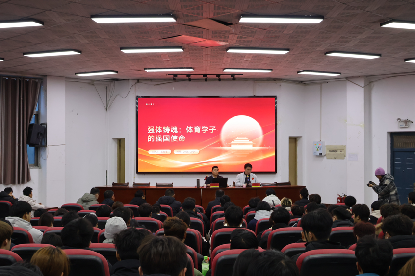 12月4日下午,副校长王友军以《强体铸魂:体育学子的强国使命》为题,在北校区报告厅为太极武术学院师生讲授思政课。