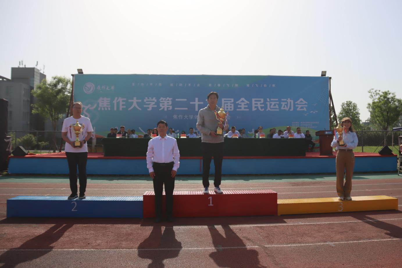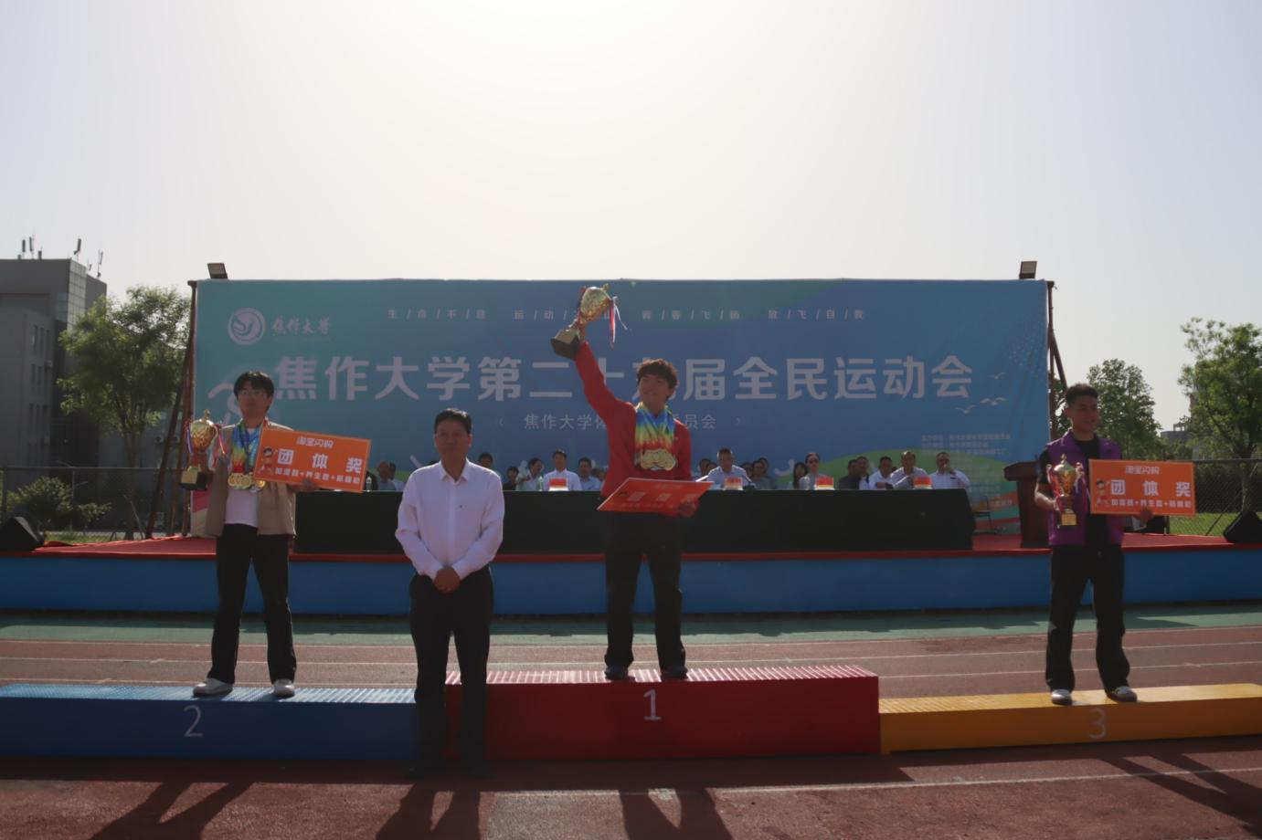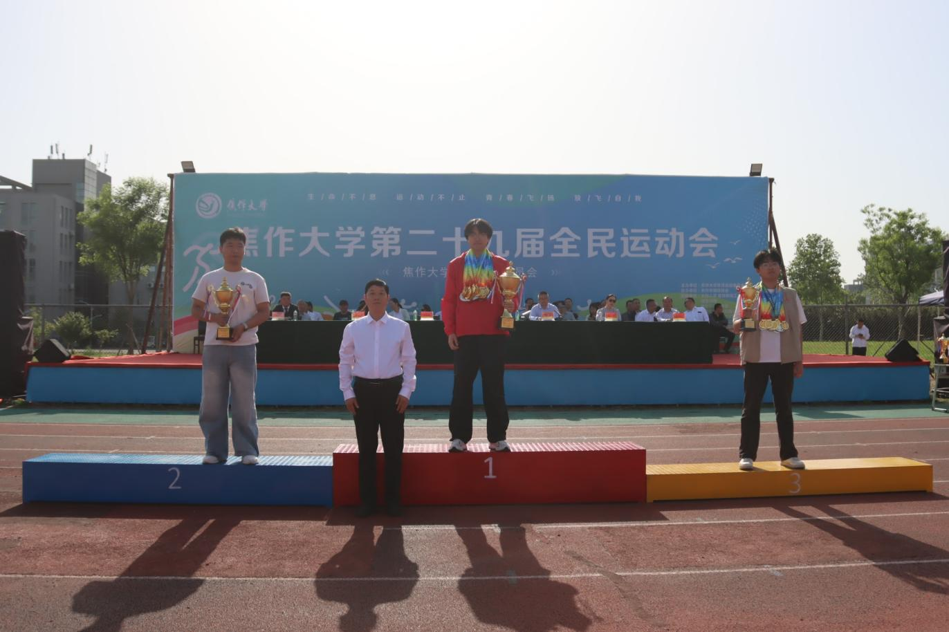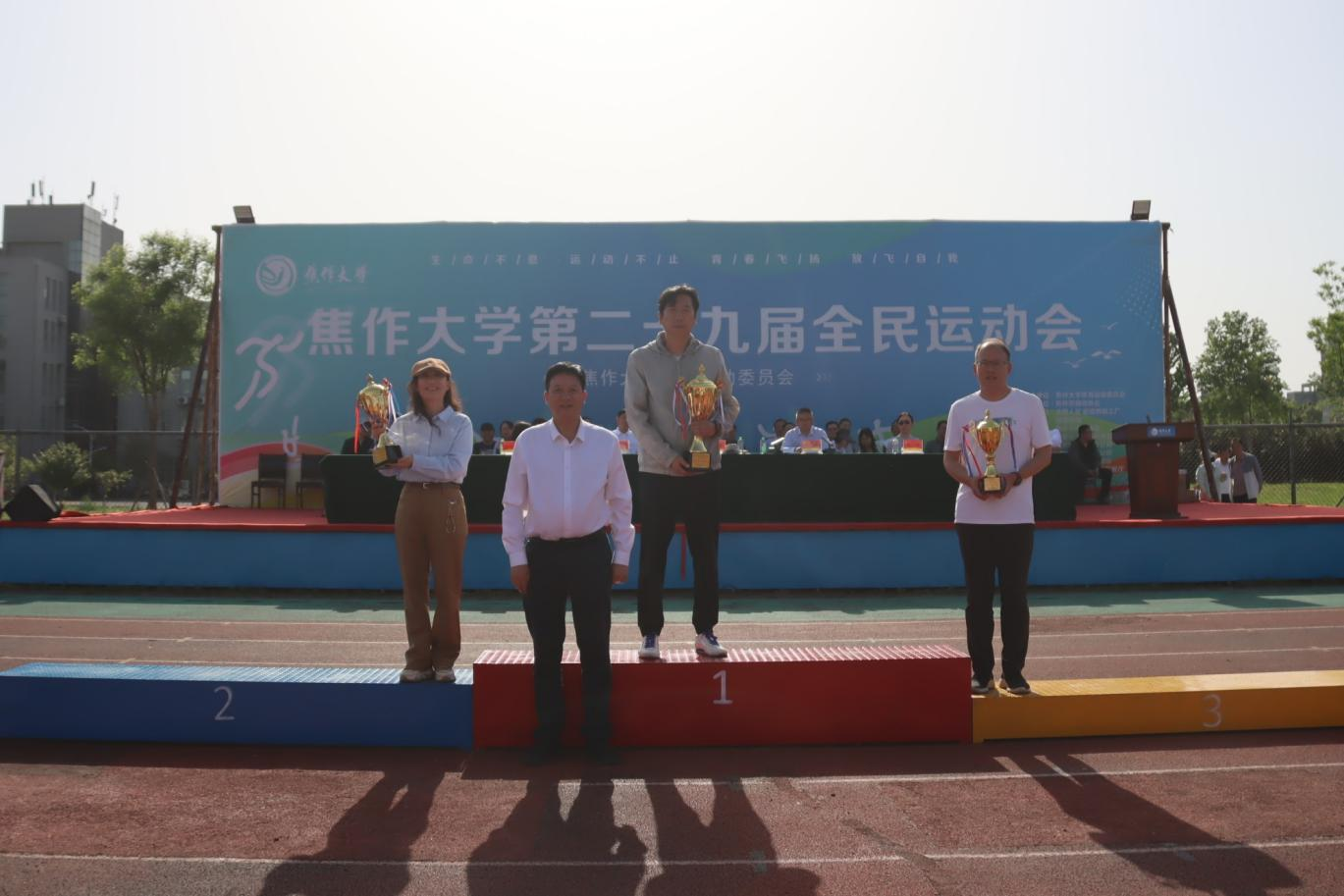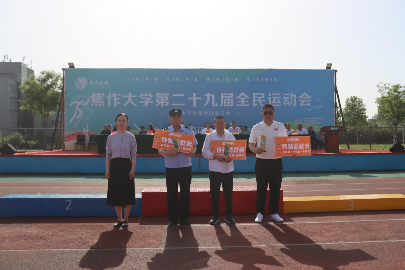 校党委书记汪诗怀宣布焦作大学第二十九届运动会开幕。