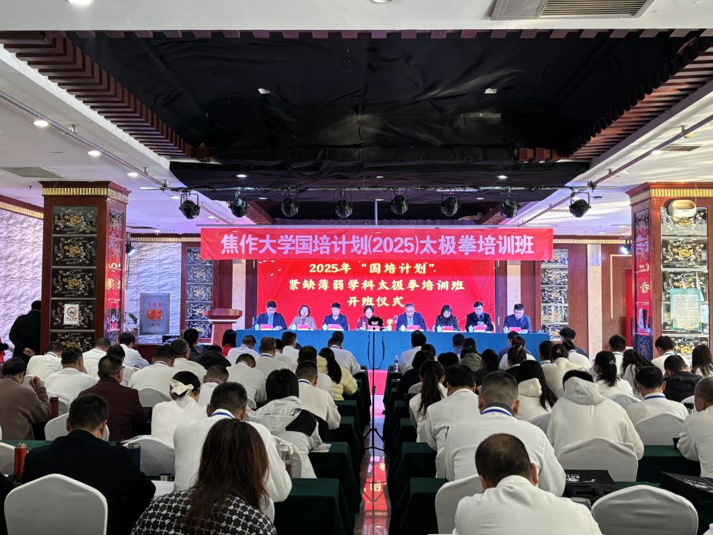 2025年11月3日上午,我校承办的河南省2025年“国培计划”太极拳项目中小学第三期培训班开班仪式隆重举行。焦作市政协副主席、焦作大学校长霍晓丽教授,副校长、校体育运动委员会主任林邓伟教授,副校长、国培计划太极拳项目首席专家王友军教授,对外合作处处长赵春青同志,人事处处长、教师发展中心主任霍霄艳同志,继续教育学院党总支书记王全伟同志,太极武术学院党总支书记栗岩同志和来自河南省的100名中小学教师共同参加开班仪式。仪式由太极武术学院院长、太极拳文化发展研究中心主任侯强主持。