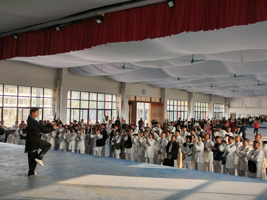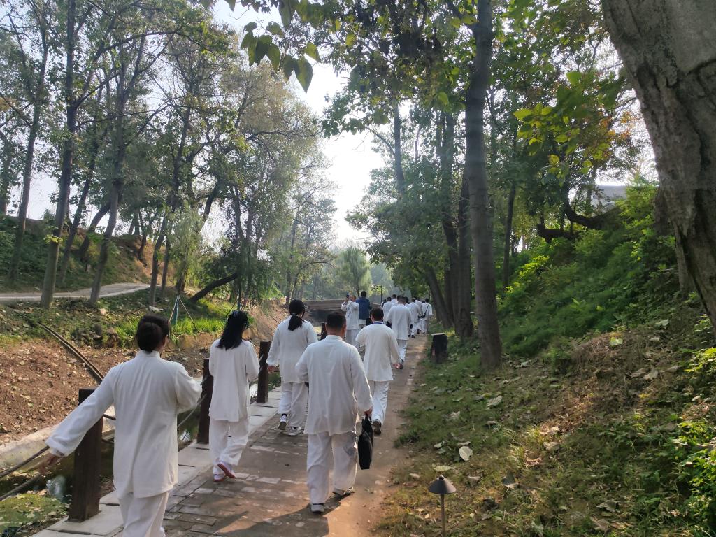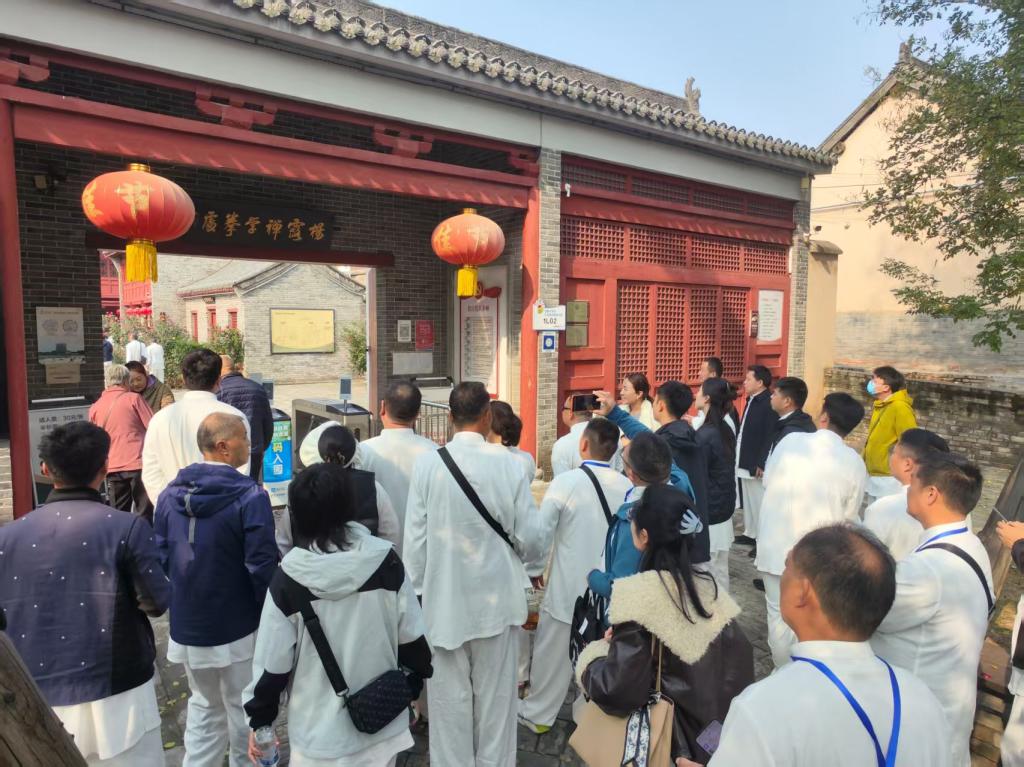 随后学员们离开学校前往陈家沟研学。学员们首先走进杨露禅学拳处,在兼具历史感与文化气息的古朴环境中,通过现场讲解厘清杨氏太极拳的起源历程与传承谱系。此次参观为强化传统武术文化认知、筑牢太极精神传承根基提供了实践支撑。接着,学员们走进太极拳博物馆,馆内通过实物陈列、场景复原、影像演示等全方位、系统化梳理太极拳的发展历程,从早期武学渊源到近现代的传承创新,从核心技法原理到文化精神内涵,均得到生动呈现。学员们认真聆听讲解、细致观察展品,进一步夯实了对太极文化的系统性认知,为深化教学实践储备了丰富知识。最后,全体学员走进陈家沟国际太极院,集中观看专业太极表演。表演者招式严谨规范,兼具艺术表现力,学员们全程凝神专注,在动静之间深刻体悟“刚柔相济、虚实相生”的太极核心精髓,进一步深化对太极技法体系与文化内涵的理解,为后续教学实践筑牢认知根基。