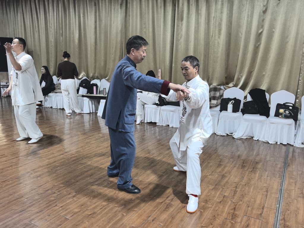 课堂之上,教练员从基础站姿教起,细致拆解提手、落脚、转身等动作细节,"膝部方向要对准脚尖""重心稳落足底",教练们手把手纠正偏差,讲解掤、捋、挤、按等手法的力度掌控,更融入阴阳平衡的哲学思想解读 。学员们身着太极服神情专注,紧盯示范反复揣摩,课堂上满是拳架舒展的身影与精益求精的热忱。